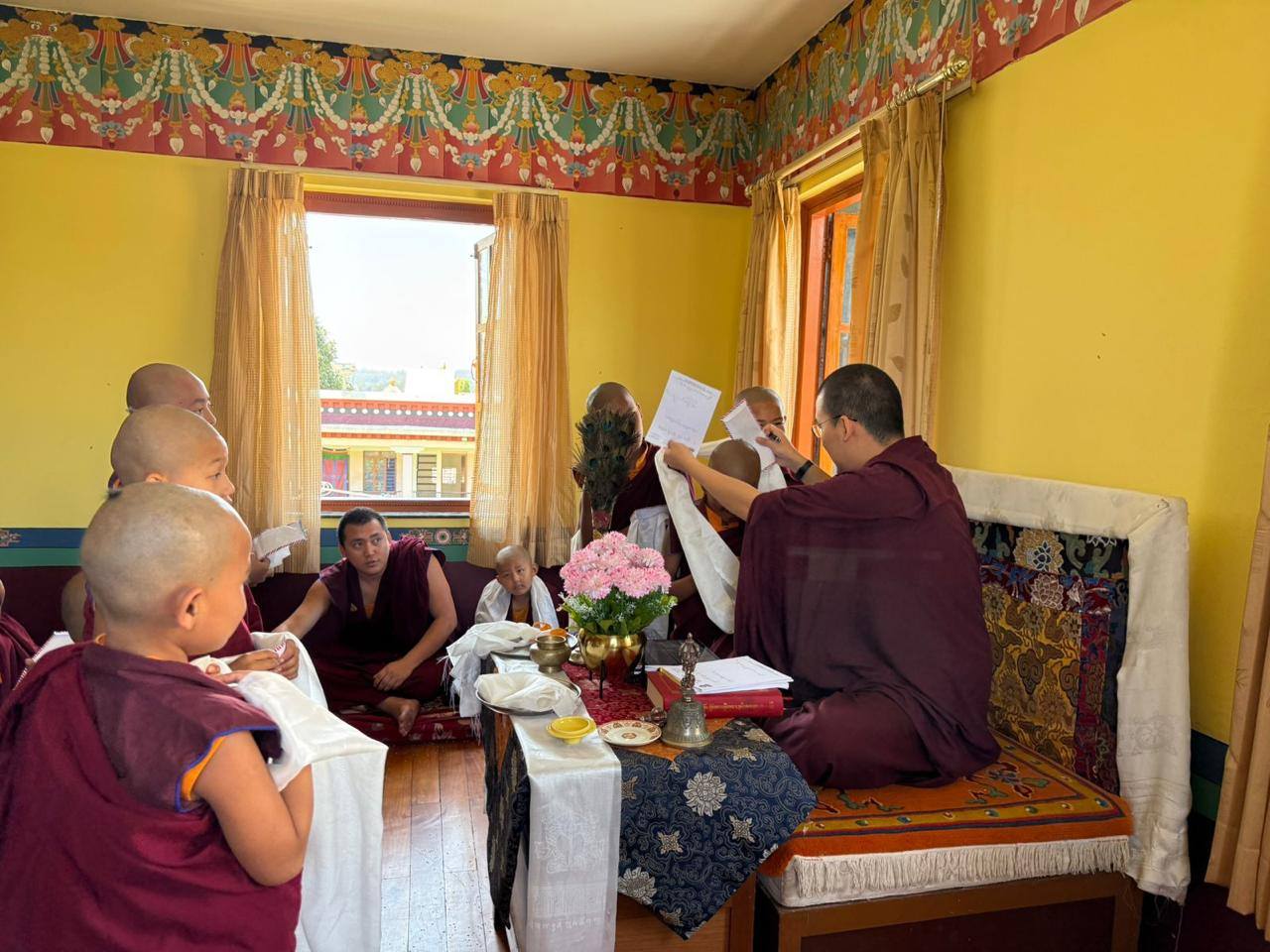 Lors de cette cérémonie, S.E. Palchen Galo Rinpoché a transmis à chacun son nom de Dharma, les guidant dans leur engagement envers le Bouddha comme maître, le Dharma comme voie, et la communauté de la Sangha comme compagne sur le chemin.