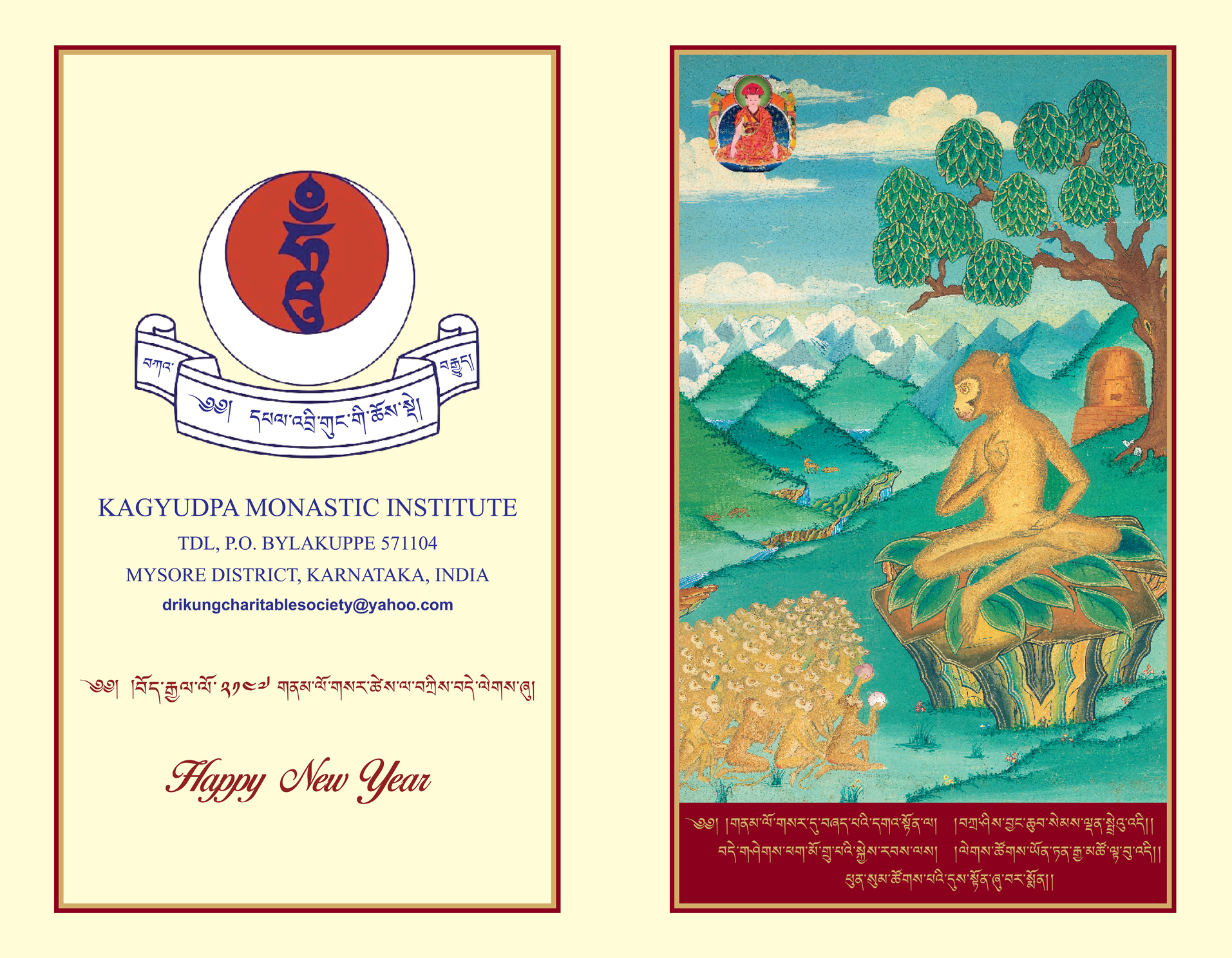 La Drikung Charitable Society a choisi pour sa carte de voeux une image remémorant l’une des vies d’un des disciples de Gampopa, né au XII siècle dans la région du Kham. Voici un passage à ce sujet: